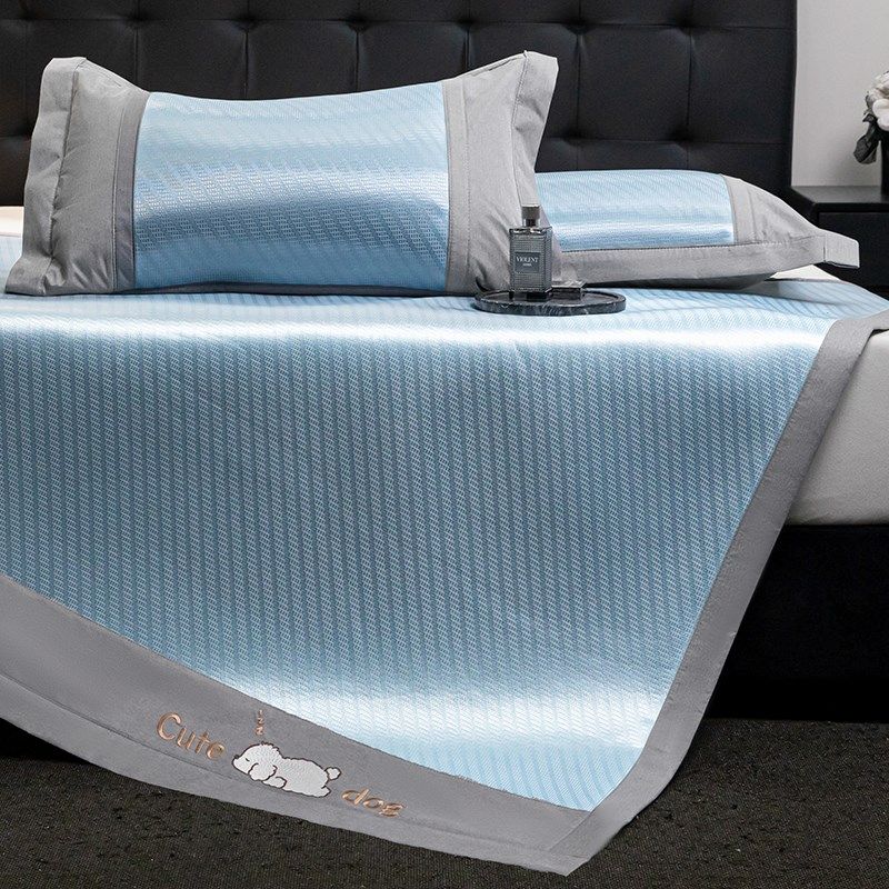 幻彩轻奢刺绣小卡通冰丝席加厚透气软空调席凉而不冰席子三件套