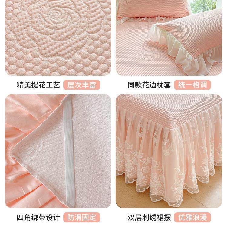 韩版公主风甜美冰豆豆凉席浪漫蕾丝少女床裙款冰丝席三件套空调席