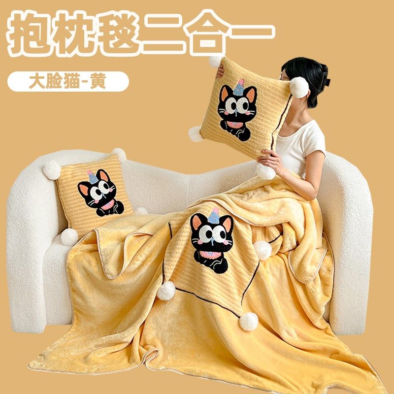 刺绣抱枕被子两用沙发空调被加厚车载大号靠枕头盖毯子二合一睡觉