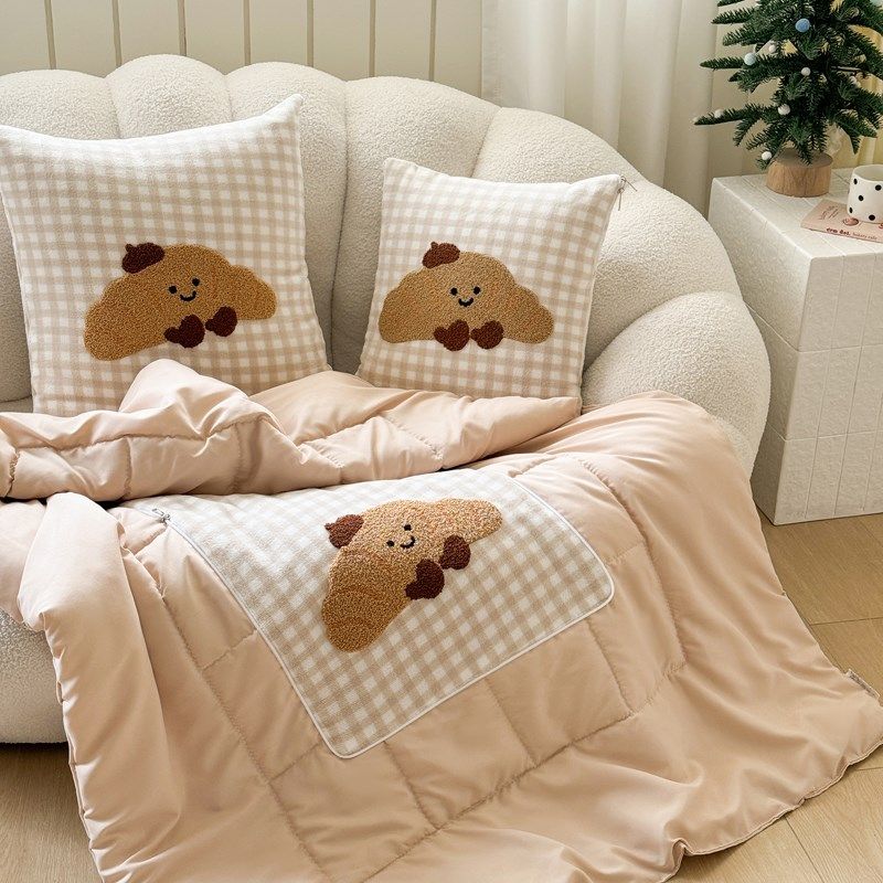 2025全棉双层纱抱枕被子两用办公室午睡空调毯汽车折叠靠垫纯棉被
