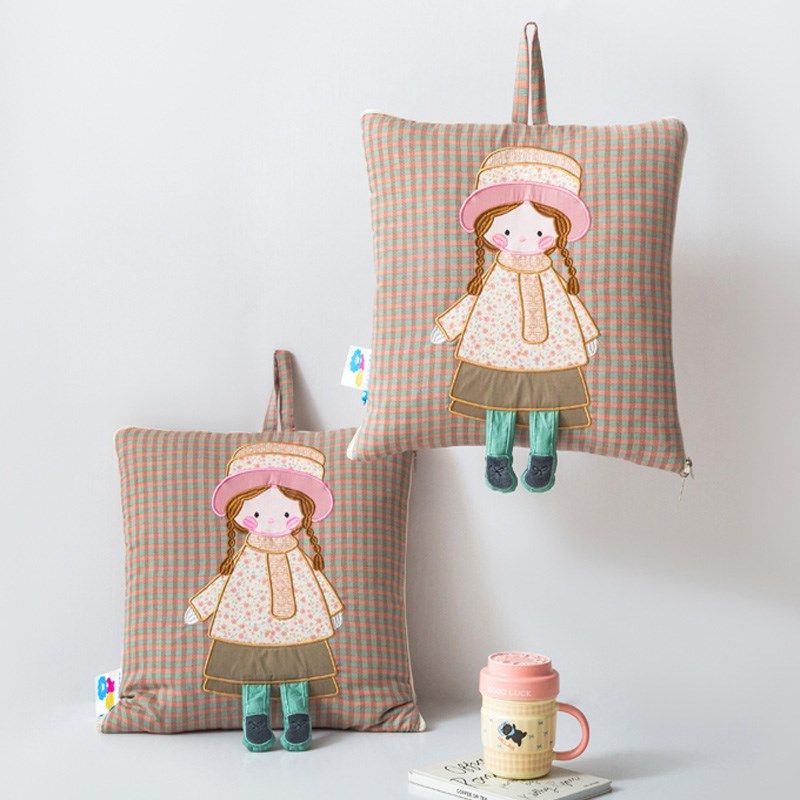 卡通纯棉色织抱枕被子两用车载午睡靠垫幼儿园手拎午休全棉空调被