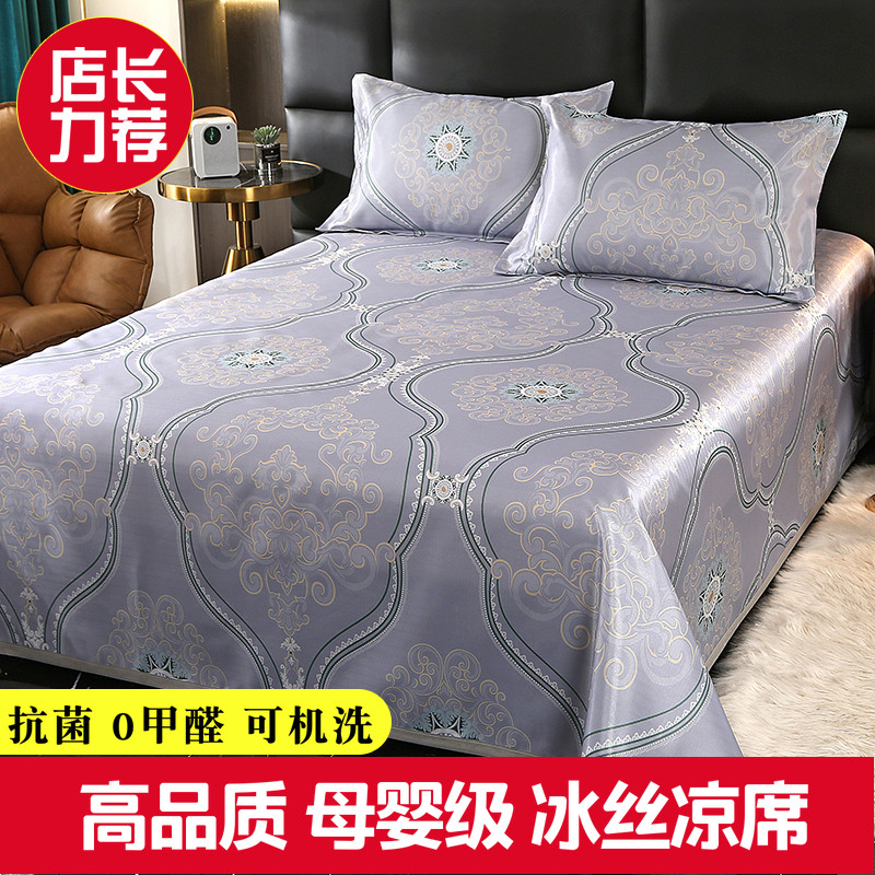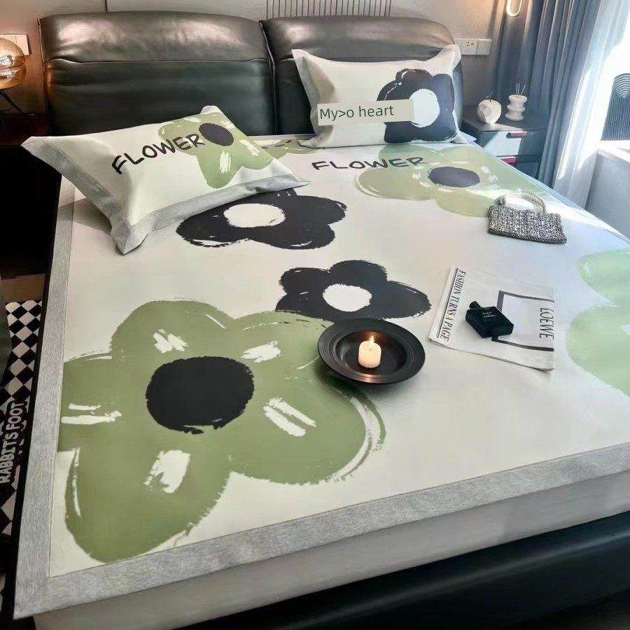 高密度冰丝凉席三件套空调凉席数码印花可水洗机洗软凉席1.5米凉