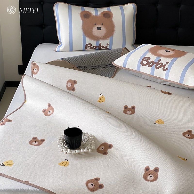 卡通刺绣冰豆豆凉席三件套a类凉感软席可水洗空调席夏季单人席子