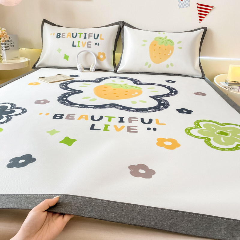 日系卡通印花床笠款凉席夏季宿舍冰丝席可爱龙猫儿童空调席可水洗