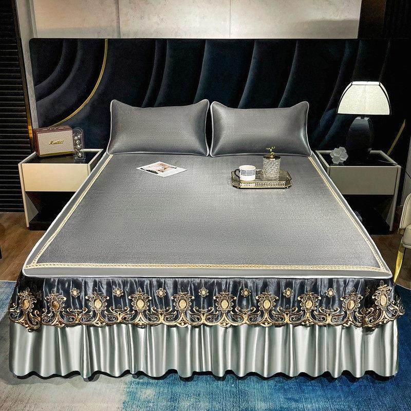 夏季冰丝凉席三件套床裙款蕾丝边凉感裸睡空调凉席可水洗折叠软席