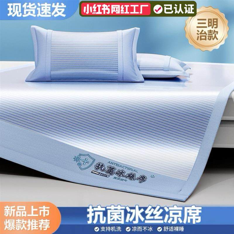 可机洗冰丝凉席三件套夏季软席子空调席可折叠夏天2023新款凉感丝