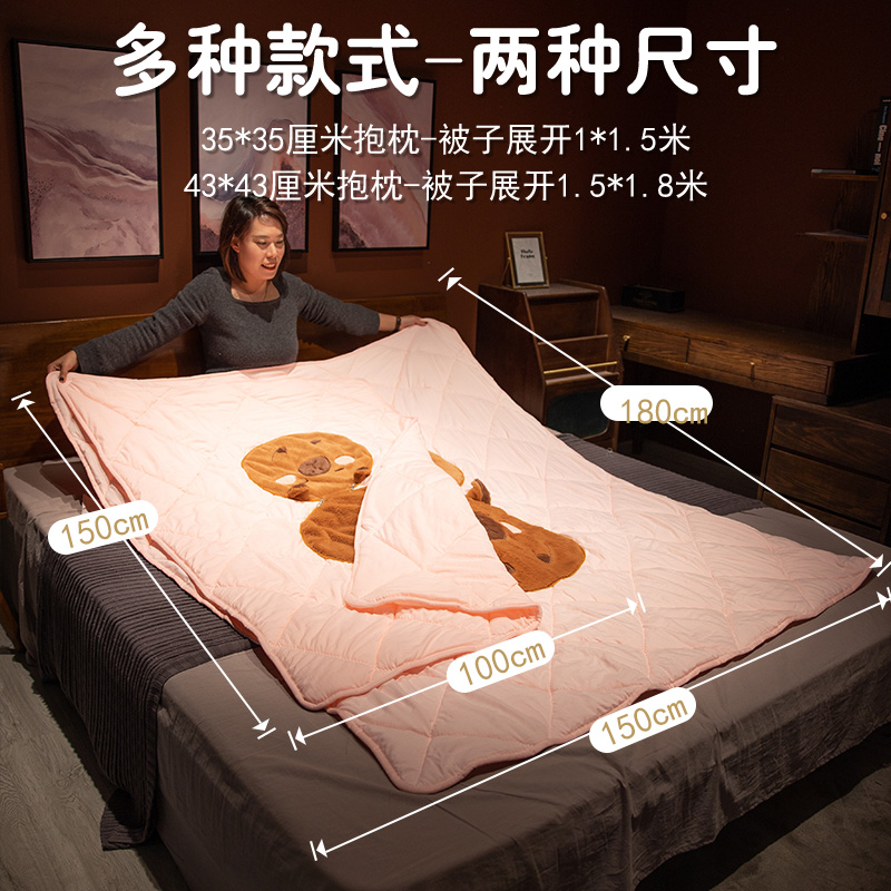 水豚抱枕被子两用办公室午睡枕头车载汽车K靠枕空调毯子二合一午