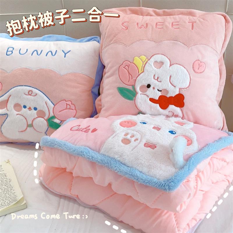 可爱手提抱枕被子两用二合一加厚折叠枕头被空调午睡办公室毯靠垫