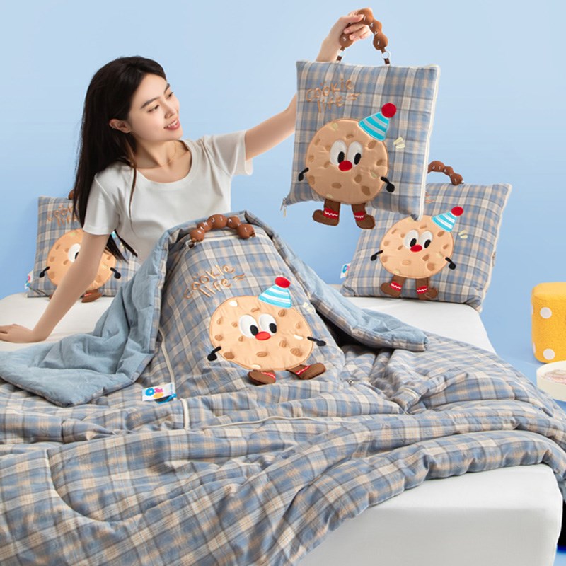 全棉色织抱枕被子两用二合一午休空调被幼儿园学生午睡纯棉夏凉被