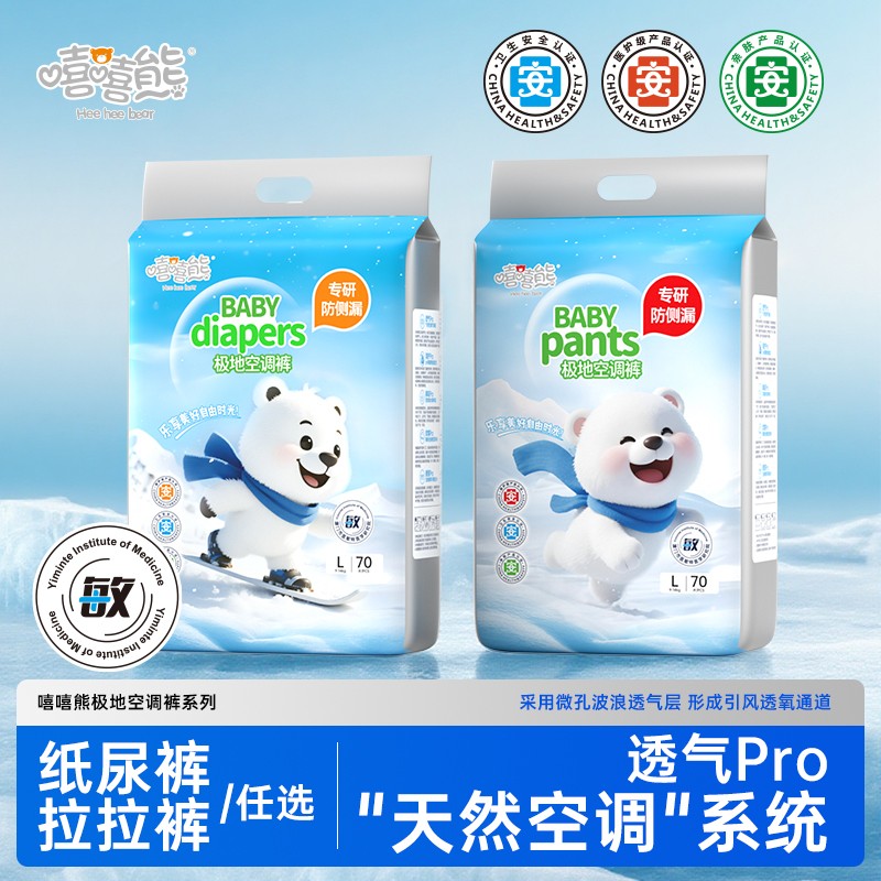嘻嘻熊极地空调裤拉拉裤超薄透气纸尿裤男女宝宝尿不湿专研防侧漏