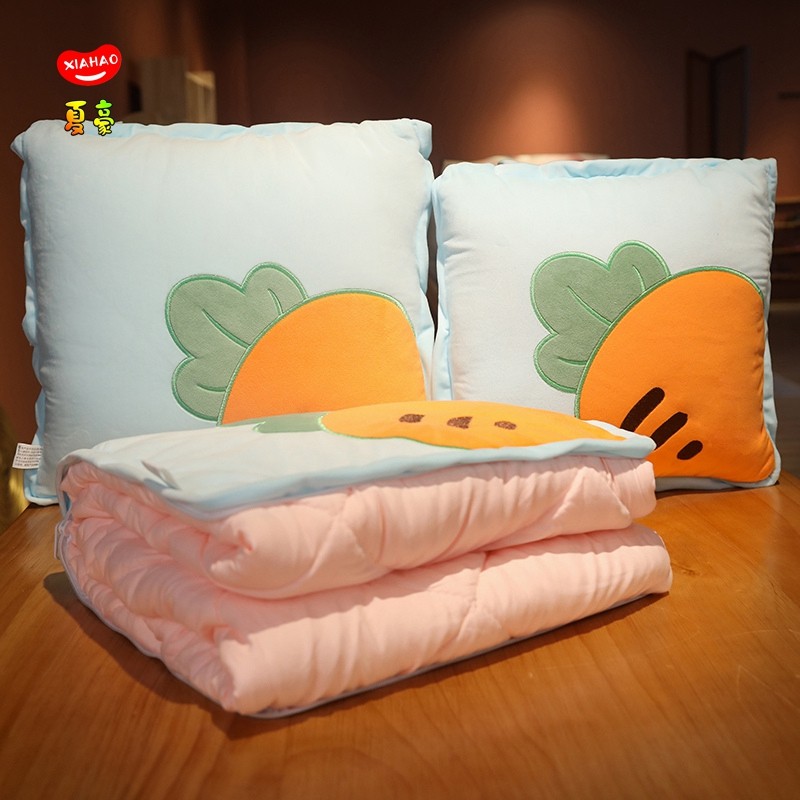 全棉双层纱抱枕被子两用汽车上靠垫办公室午休折叠纯棉空调夏凉被