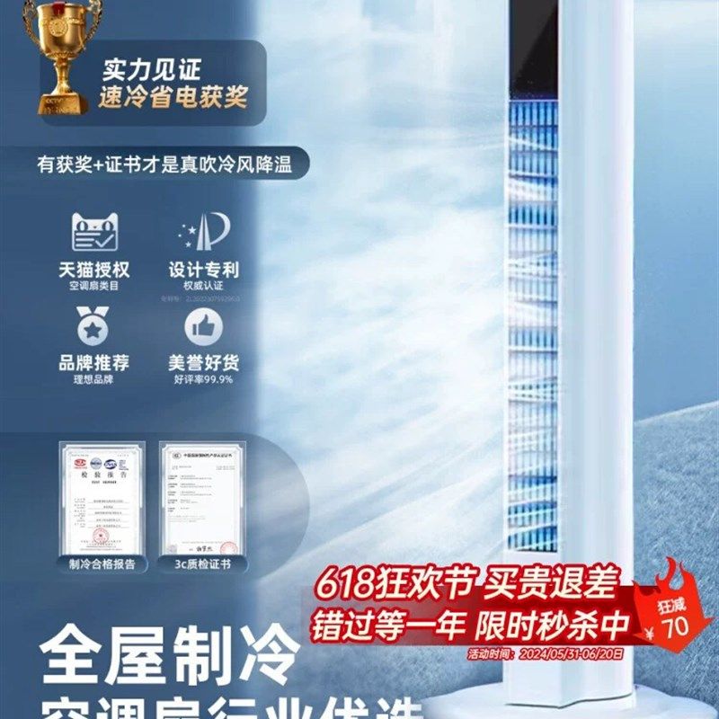 变频制冷水冷空调扇家用冷风w扇塔扇加冰加水单冷小空调Z澳凯不可