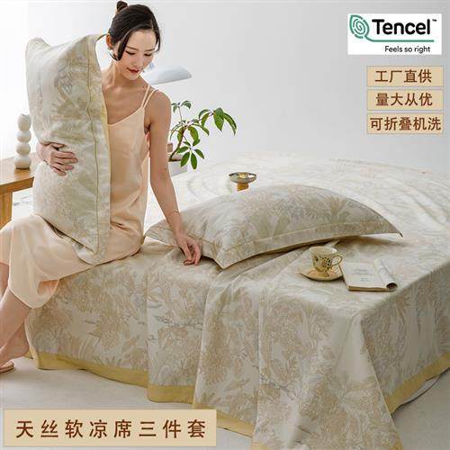 天丝竹纤维凉席三件套夏季竹语软凉席夏天空调可水洗床单凉席