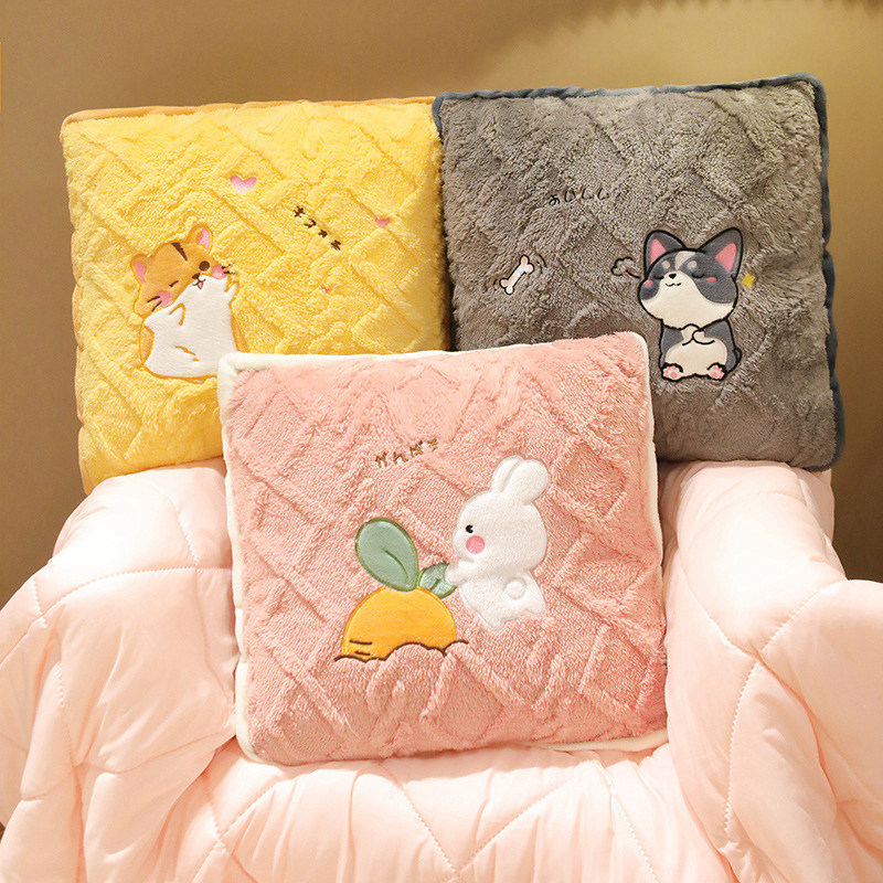 卡通可爱抱枕被子两用二合一毛毯子汽车载办公室午睡珊瑚绒空调毯