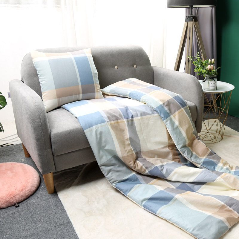 四季款全棉色织水洗棉大豆抱枕被两用沙发办公室午睡床上空调被子