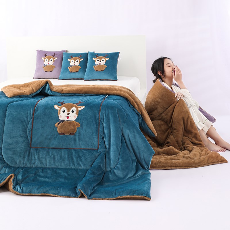 冬季加厚多功能抱枕被汽车靠垫二合一办公室沙发午休水晶绒空调毯