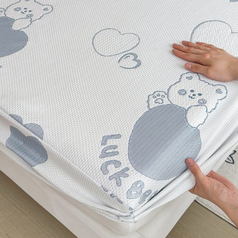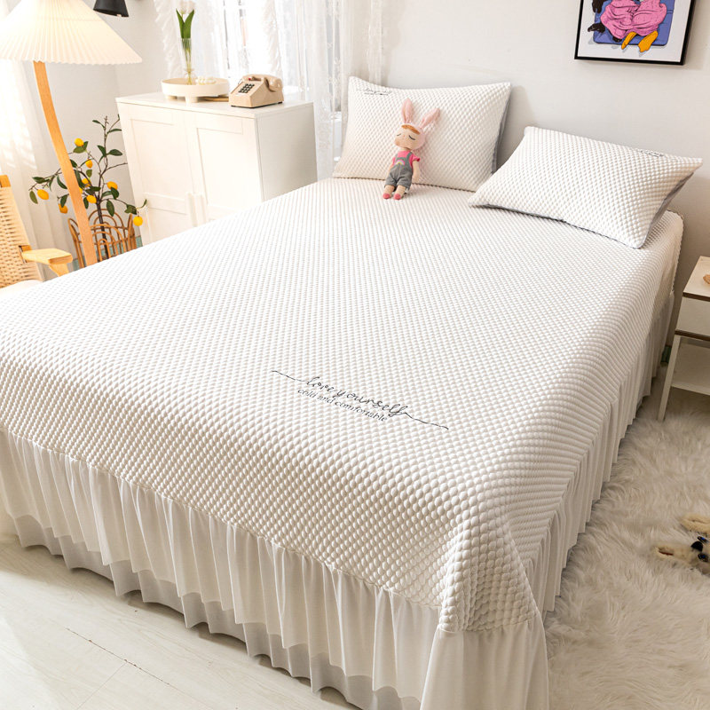 床笠款凉感豆豆冰丝席三件单人公主风床裙款空调席可机洗凉席