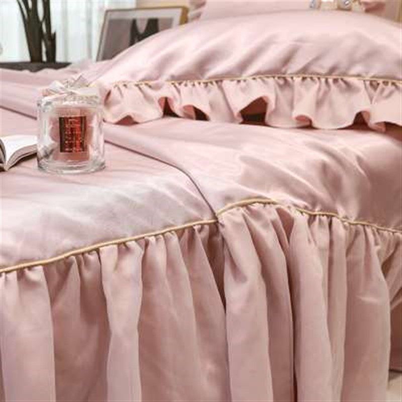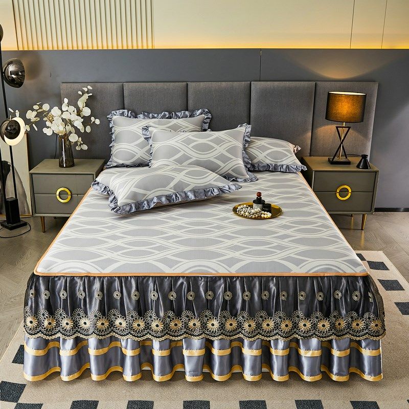 新款公主风冰丝凉席三件套床裙款夏季凉感床单蕾丝花边空调软席子