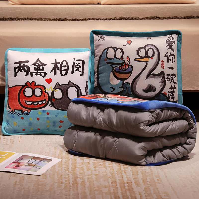四季通用抱枕被子两用车载靠垫办公室午休枕头二合一空调夏被卡通