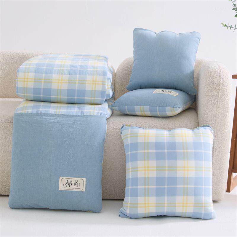 全午棉色织休抱枕被子两用夏被公办室多功能空调车cmypL0NG载沙发