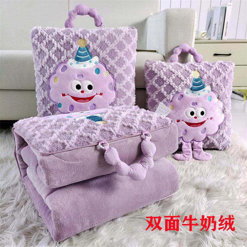 可爱卡通抱枕毯子两用二合一午睡被毛毯车载靠垫办公室午休空调毯