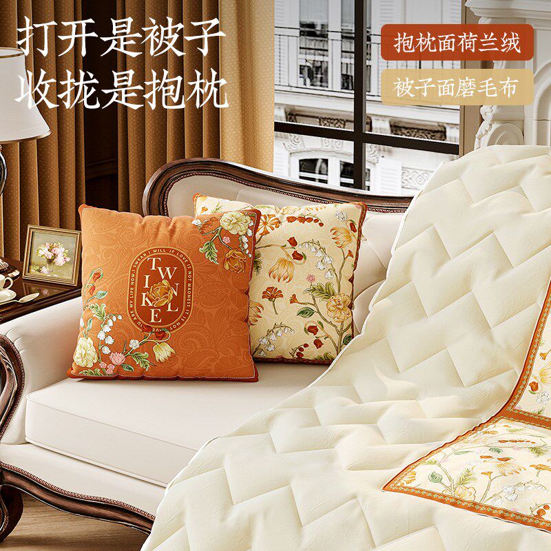 法式田园抱枕被二合一车载多功能午睡空调毯子办公室两用折叠靠枕