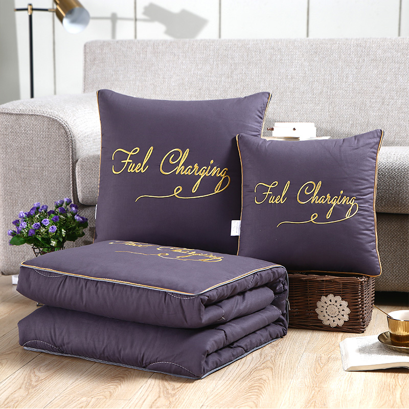 雪花呢刺绣多功能抱枕被子两用二合一折叠毯汽车载午睡加厚空调被