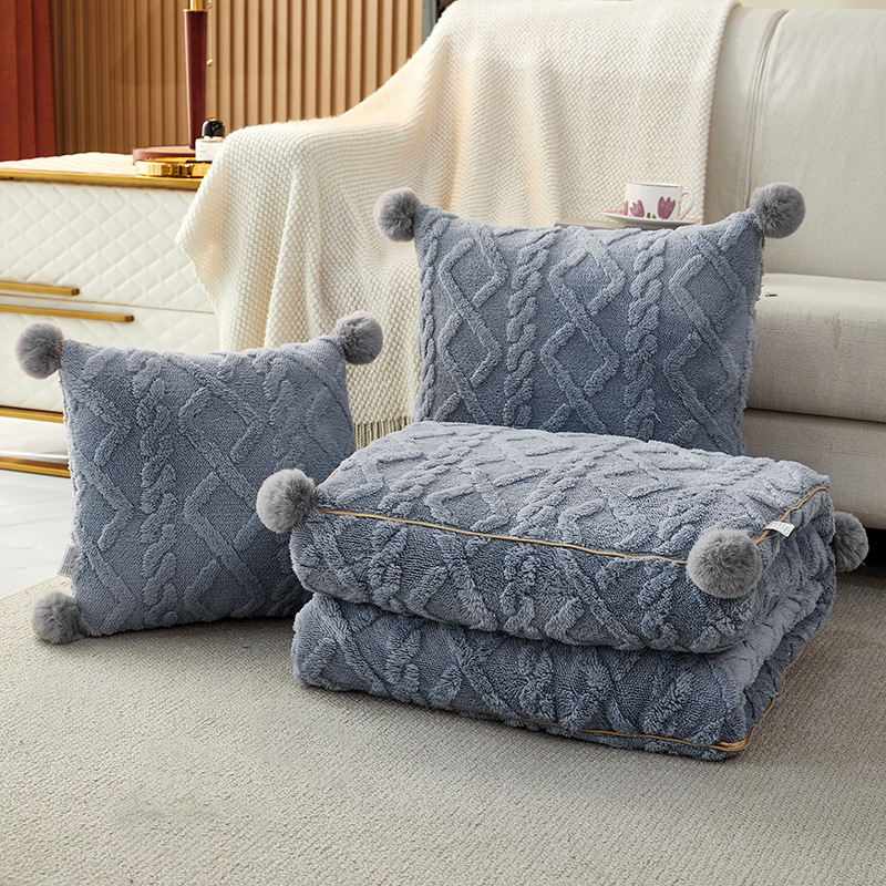 韩式两用抱枕被加厚豆豆绒简约二合一汽车靠O垫办公室午休空调毛