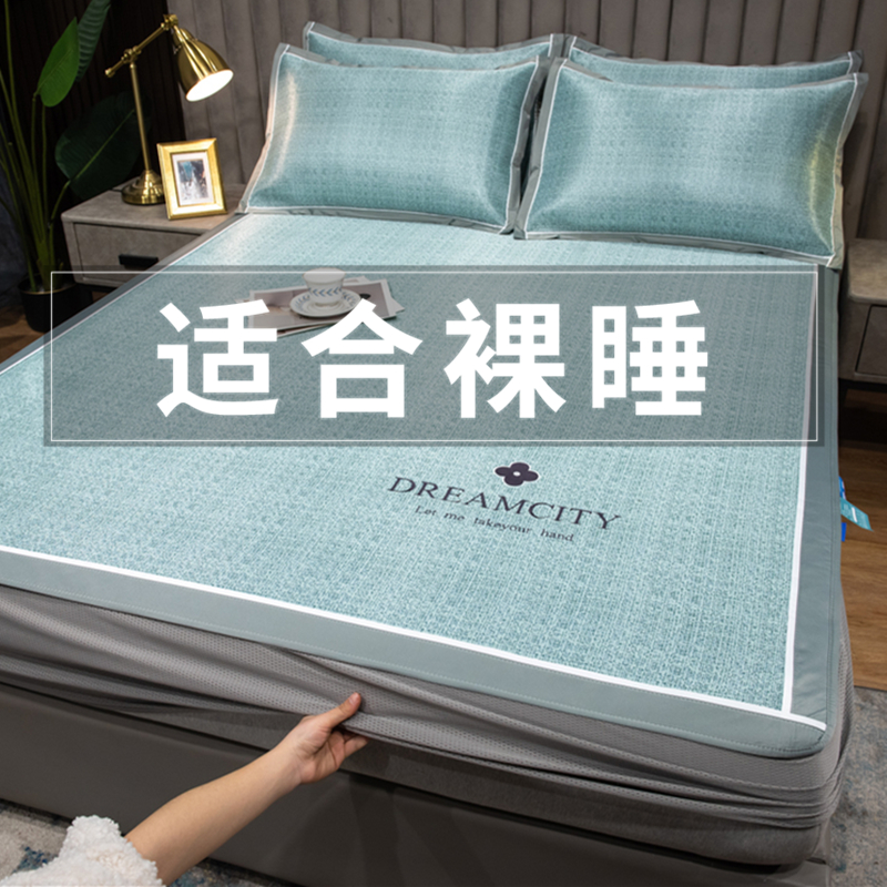 夏季冰丝凉席床裙款三件套可机洗水洗凉感床单人空调软席夏天席子