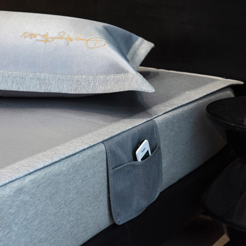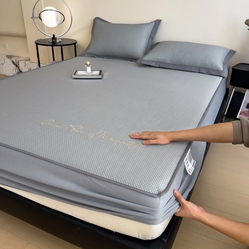夏季凉感可水洗冰藤席三件套字母刺D绣折叠式床席床笠款空调软席