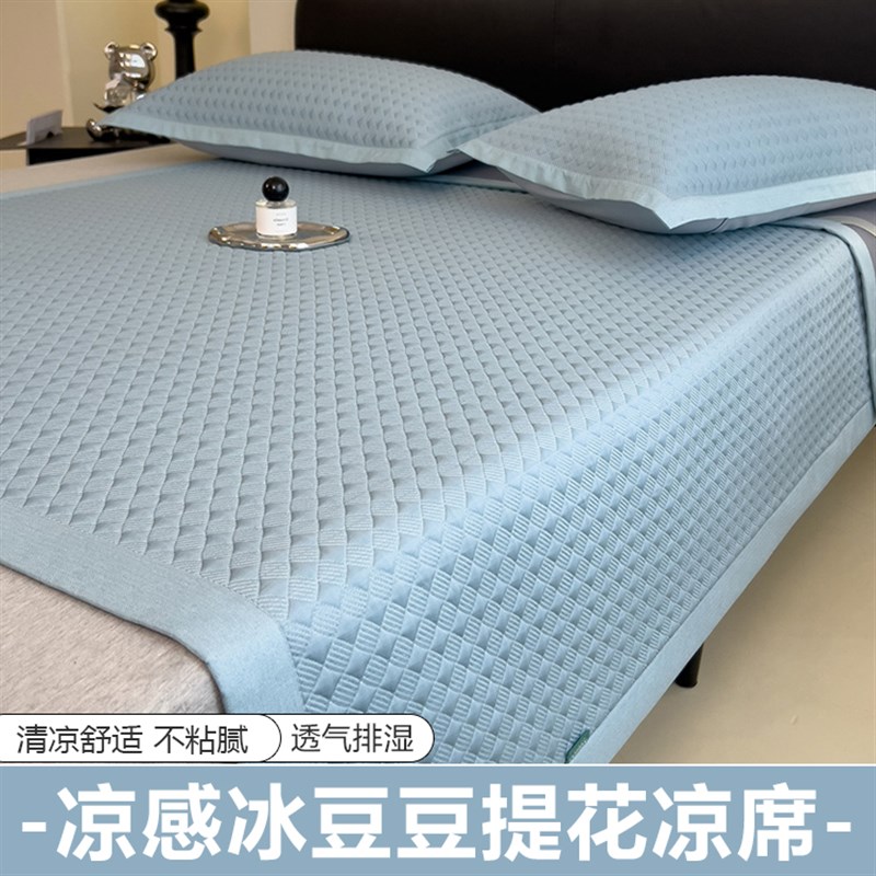 类凉感冰豆豆提花凉席三件单人空调席子冰丝软席子20新款