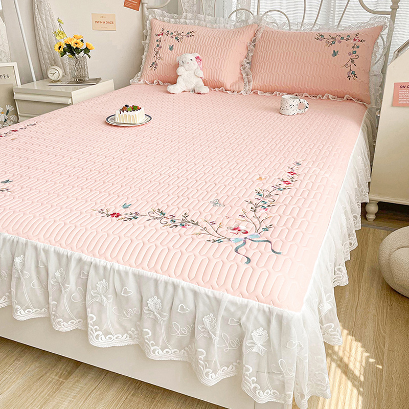 A类高端夏季乳胶床笠款凉席三件套卡通风刺O绣可水洗床裙款空调席