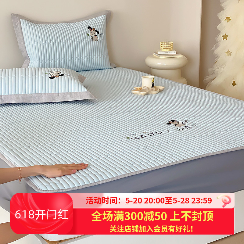 ins大众卡通床上乳胶凉席套件三件套冰丝软席可水洗空调软席夏凉