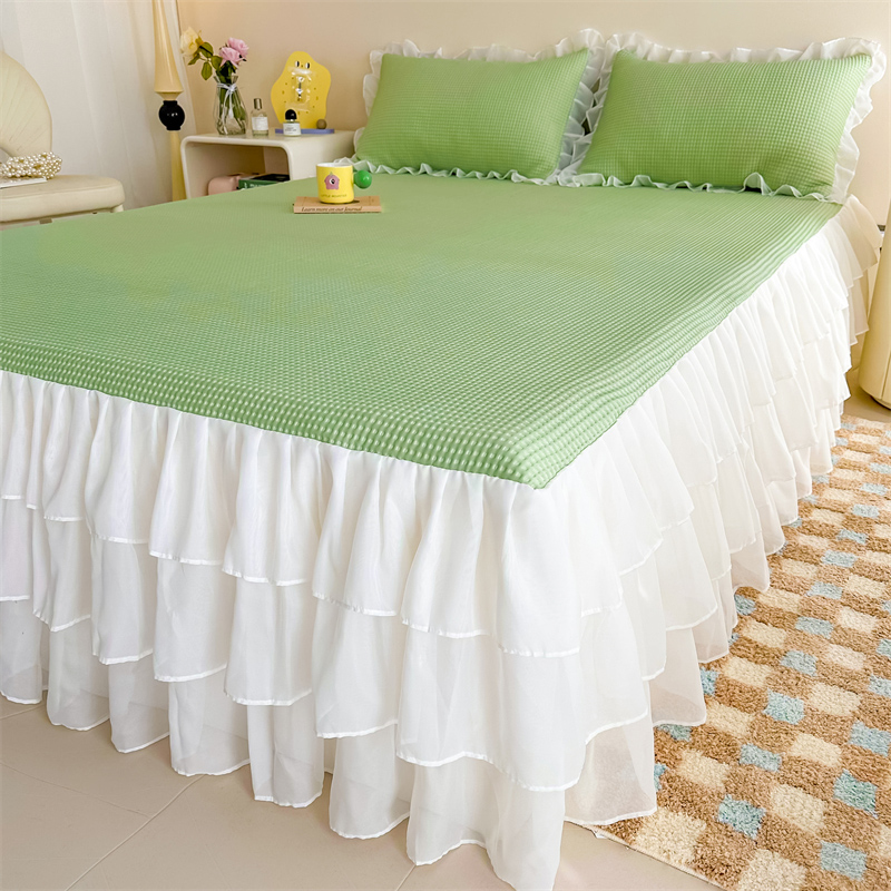 夏季超软糯冰豆豆凉感丝凉席三件套床笠仙女床裙边裸睡空调软席子
