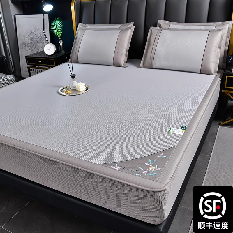 夏季轻奢加厚凉感冰丝凉席三件套刺绣可水洗空调席子可折叠床笠款
