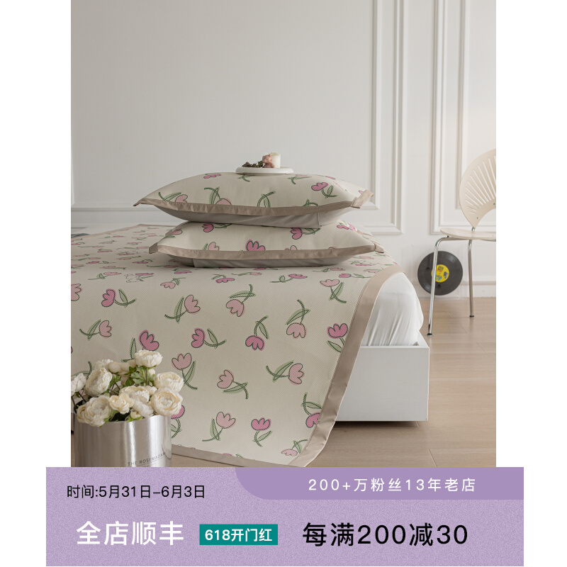 清新少女心碎花冰丝席三件套 田园印花凉席夏季空调双人家用软席