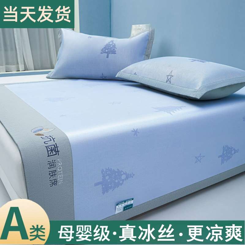 凉感冰丝凉席三件套夏季家用可水洗机洗床席床笠款空调软席子