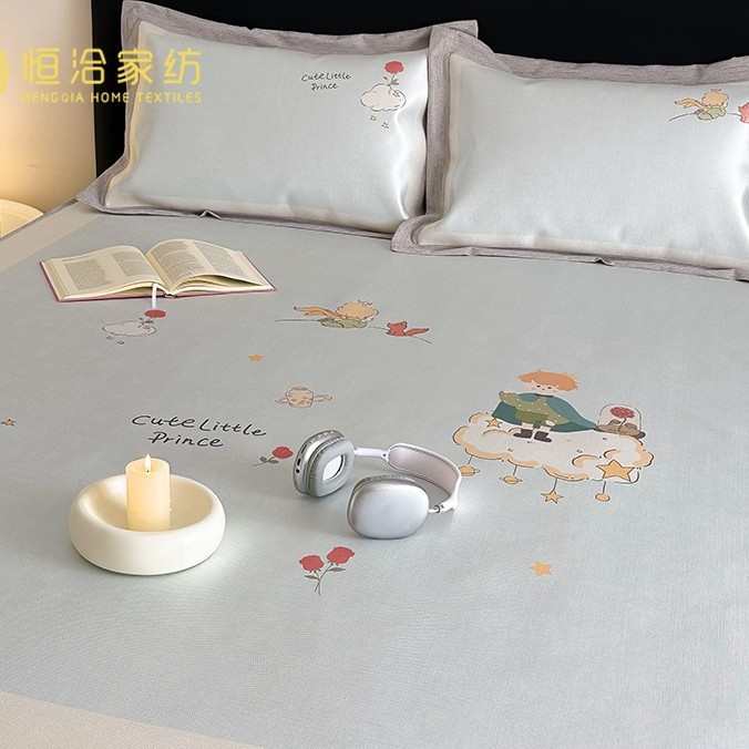 轻奢A类凉感印花冰丝养生席夏季空调席三件套1.8米2m床笠式凉席子