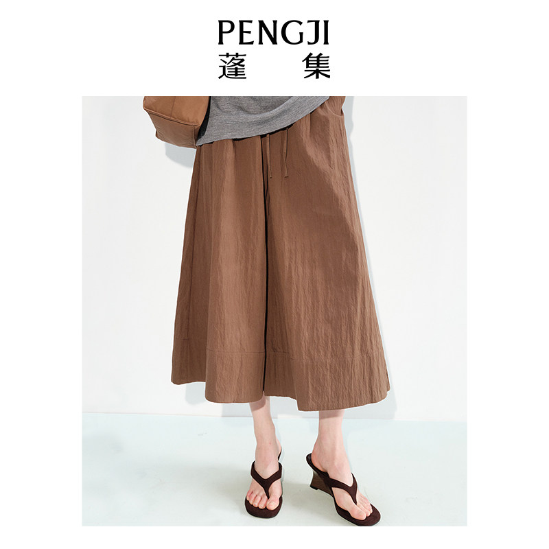 PENGJI蓬集 夏季8分裙裤凉爽纸感抽绳松紧腰宽松显瘦A摆空调裤