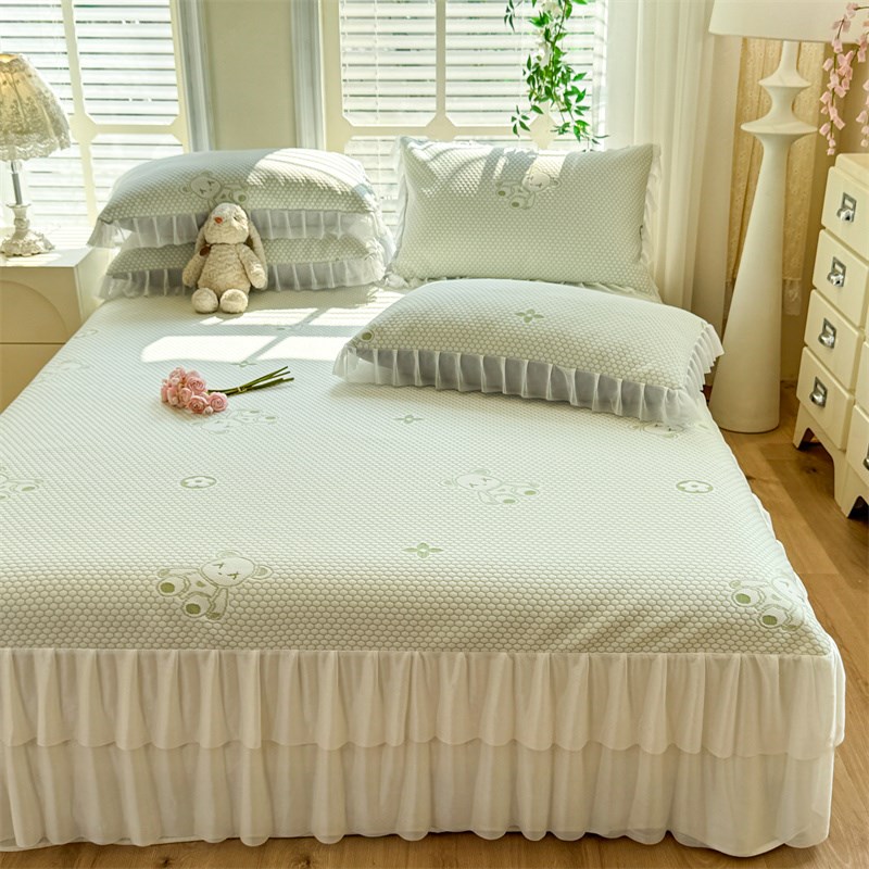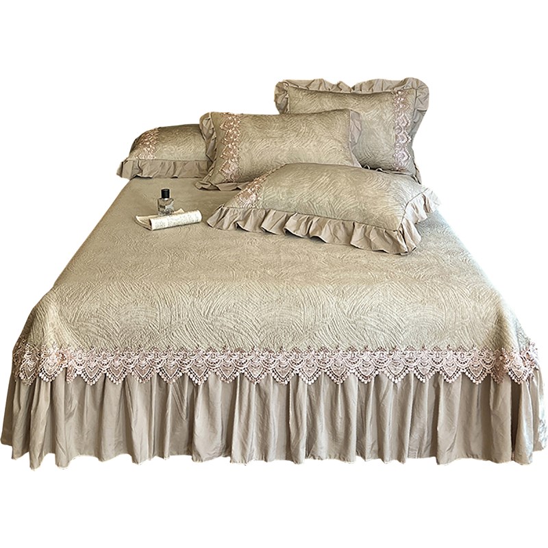 法式冰豆豆凉席床盖三件套蕾x丝花边冰丝席床罩床裙高端空调软席