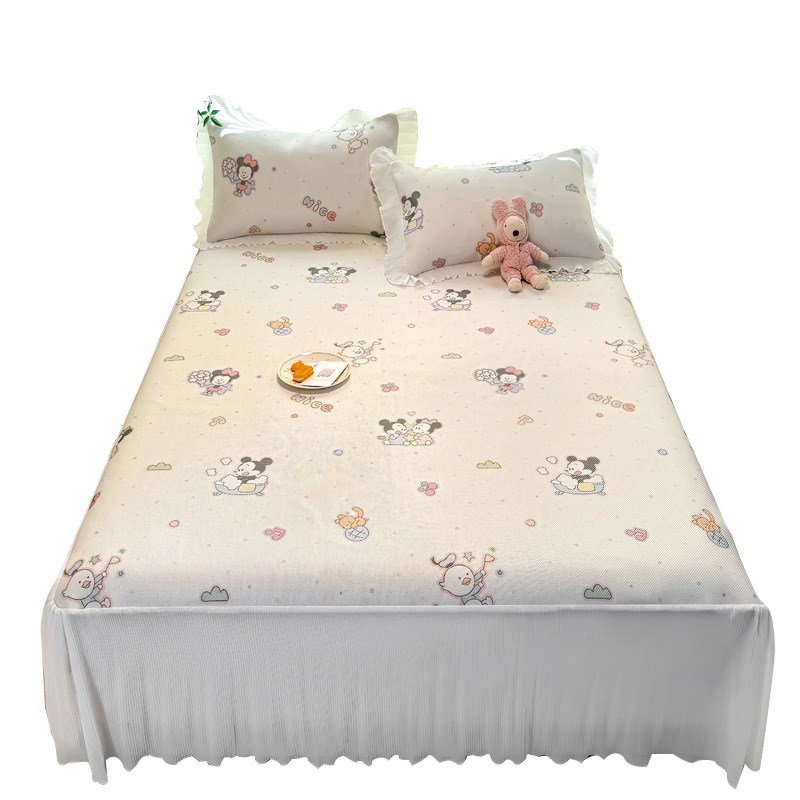 2025年夏季新款冰藤凉席u床裙款三件套卡通公主风空调冰丝席可机