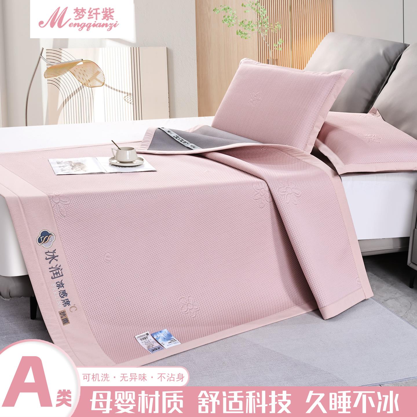 梦纤紫A类凉感冰豆豆凉席三件套夏季冰丝凉席床单可机水洗空调凉