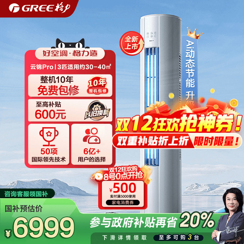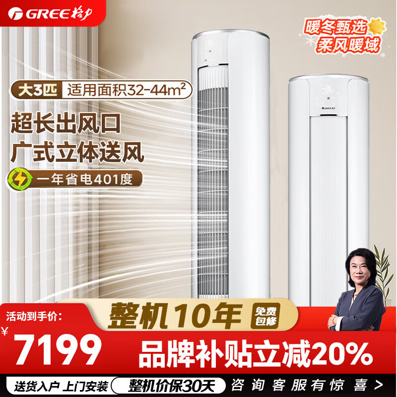 格力(GREE)空调大3匹i尚/时光绘一级能效冷暖分送衡温省电空调立式柜机 大3匹 一级能效【i尚】白
