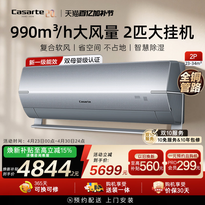 换新补贴卡萨帝挂机空调变频家用卧室冷暖大风量铜管1级2匹BAB