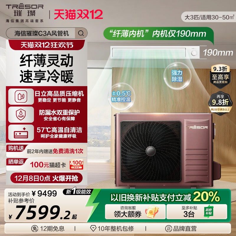 【政府补贴】海尔6匹柜机大5匹一级中央空调商用立式变频冷暖旗舰