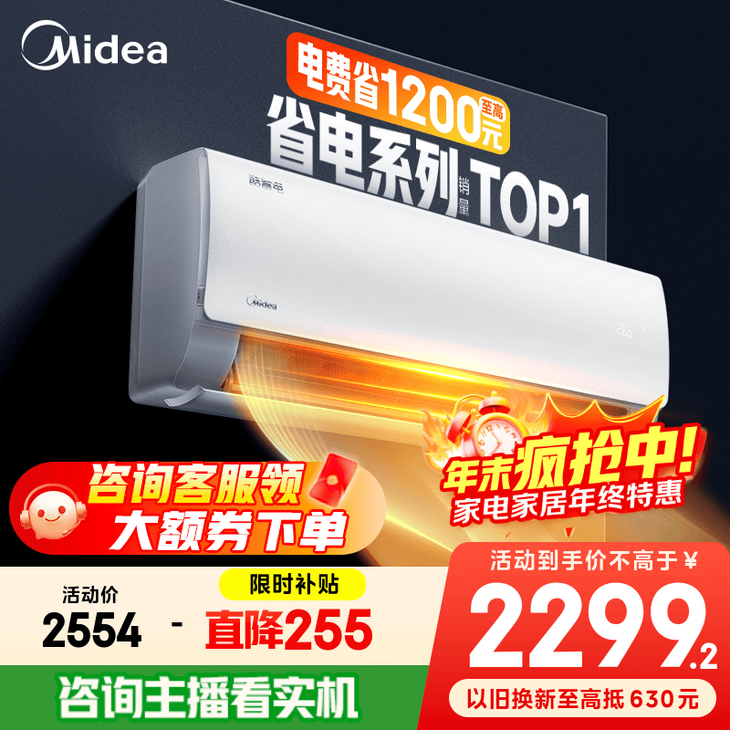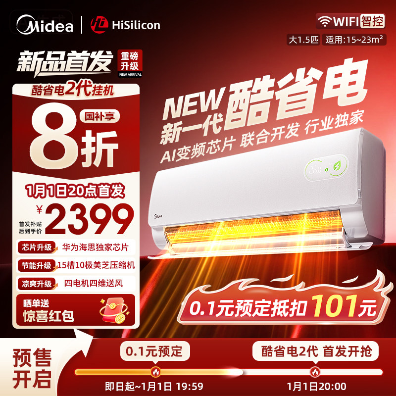 美的空调 爆款推荐 酷省电 新一级能效 变频冷暖 家电国家补贴入口 节能省电家用卧室挂机 以旧换新 酷省电 大1.5匹 省电25%