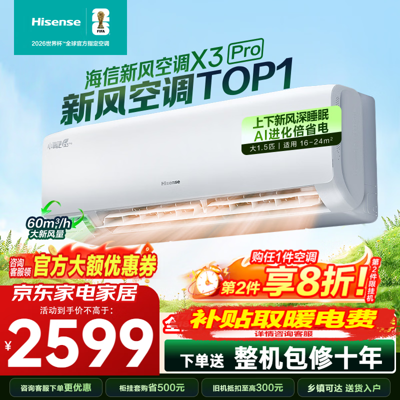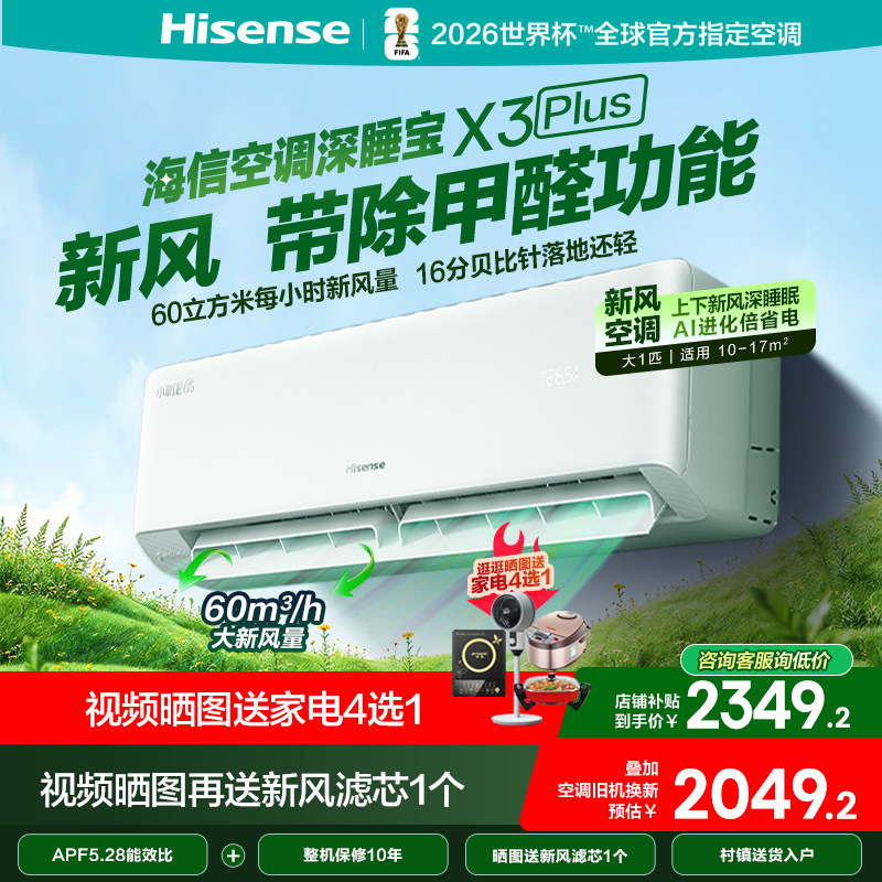 海信(Hisense)新风空调 X3Plus/ X3Pro/ 深睡宝X5 大1.5匹 增氧新风 AI省电 新一级能效 深睡眠挂机空调 深睡宝 大1.5匹 35GW/X300Pro-X1