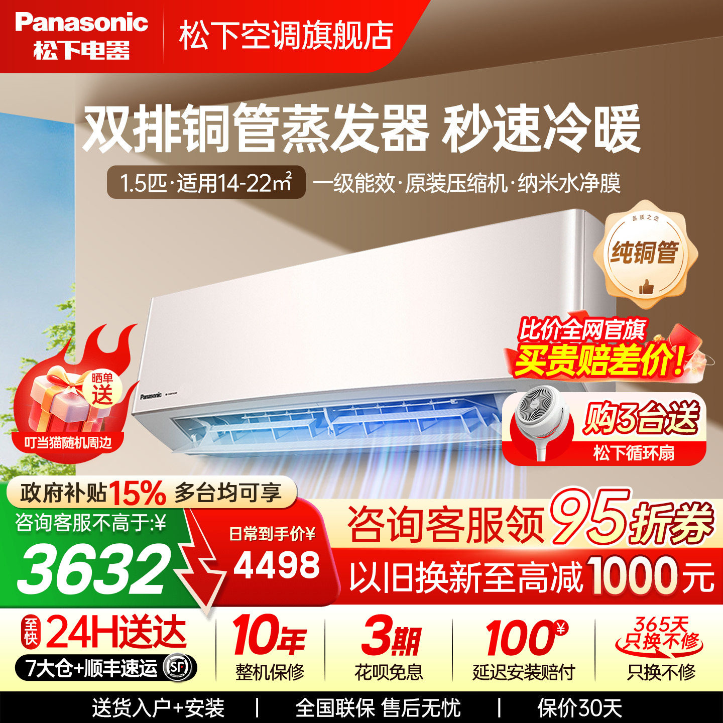 松下双排铜管空调1.5匹变频一级能效家用卧室冷暖挂机LG13KQ10N