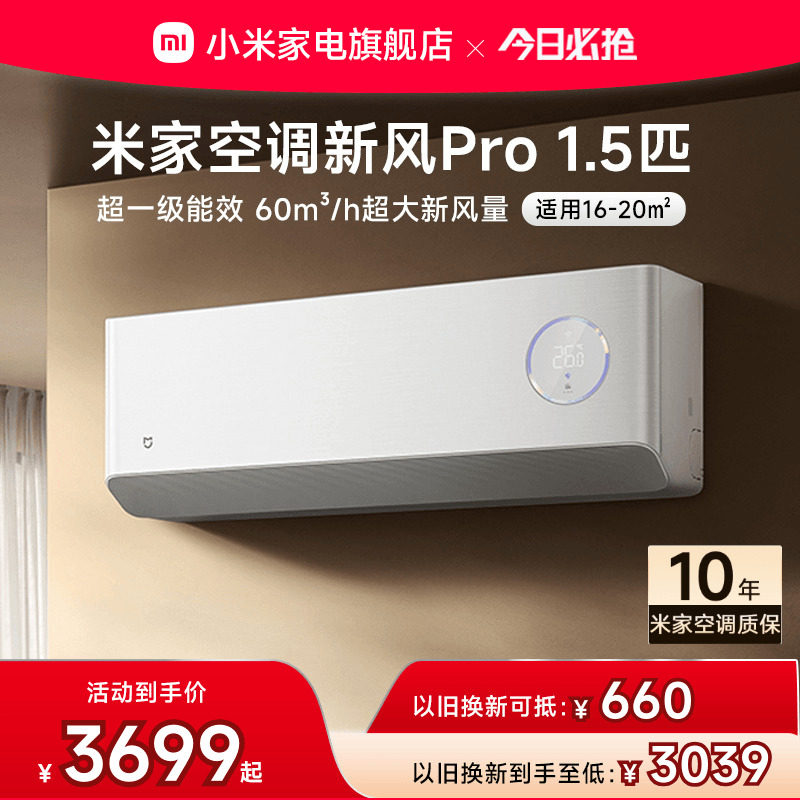 小米米家空调 新风Pro1.5匹超一级能效冷暖卧室家用挂机变频智能