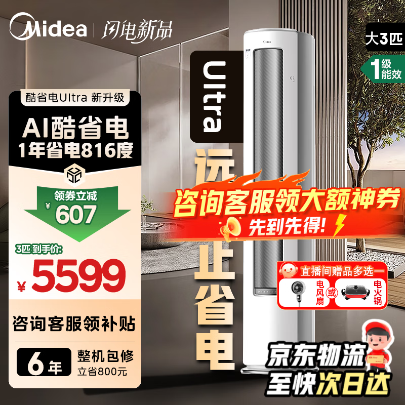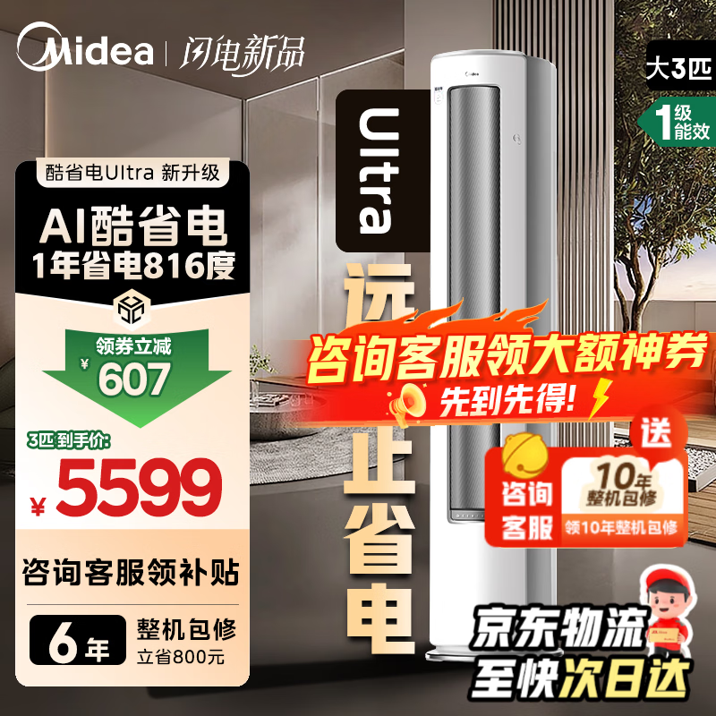 美的(Midea)空调柜机 酷省电Ultra3匹/4匹 新一级能效 AI酷省电技术 变频冷暖立式 智能家电以旧换新 酷省电Ultra 一级能效 3匹